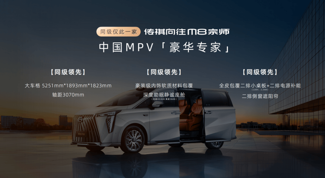 傳祺向往M8宗師,是全家長(zhǎng)途出行的“舒適專家”,日常城市通勤的“智能專家”,周末家庭聚會(huì)的“插混專家”,商務(wù)接待出行的“豪華專家”,更是守護(hù)全家出行的“安全專家”。毫無(wú)疑問,它就是25萬(wàn)級(jí)最值得推薦的豪華MPV。