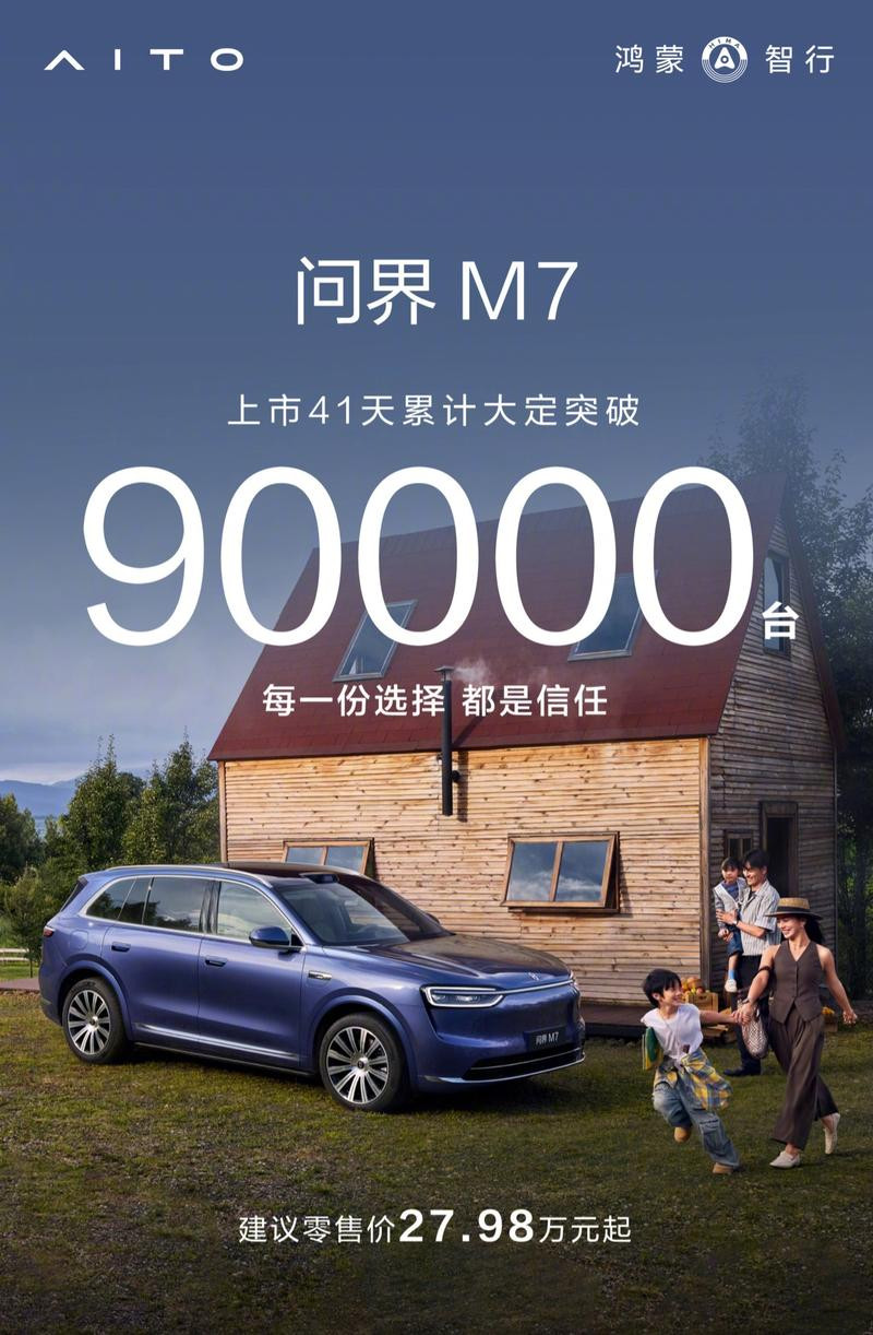 11月4日,鴻蒙智行宣布全新問界M7上市41天累計大定突破9萬臺。全新問界M7于9月23日上市,售價區(qū)間27.98-37.98萬元。新車定位為高端智能SUV,主打豪華與科技感,主要競爭對手包括特斯拉Model Y、理想L7等車型。