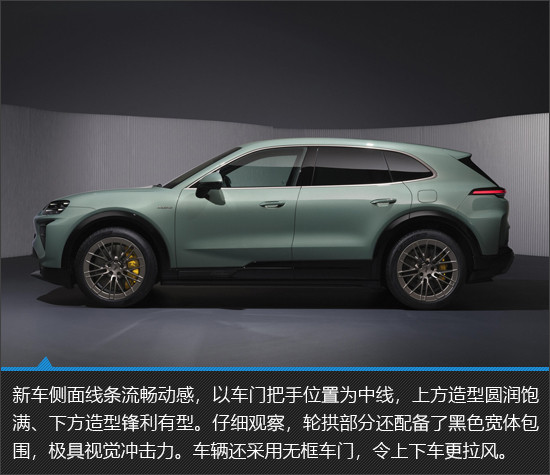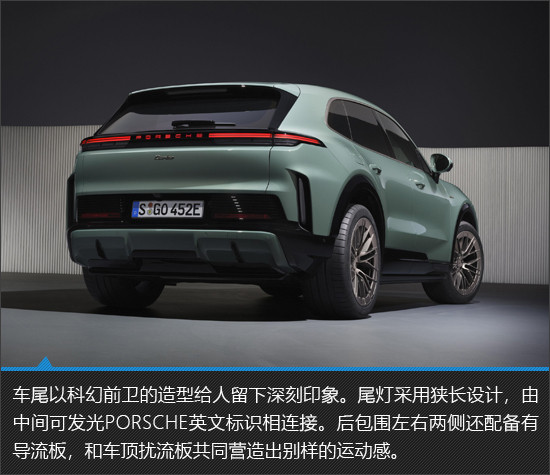 相比于目前國內(nèi)在售的燃油、混動版保時捷Cayenne車型,新車整車外觀可謂進行了大刀闊斧地改變。封閉式前臉和一體式尾部擴散器設計,彰顯出車輛的純電身份。在空氣動力學表現(xiàn)上,新車不僅在車頭配備了主動開閉式進氣格柵,并且車尾兩側也設置了兩個半隱藏式的可伸縮導流板,高速行駛時可以提供更好的車身穩(wěn)定性。尺寸方面,新車長寬高分別為4985mm*1980mm*1674mm,軸距達到3023mm。