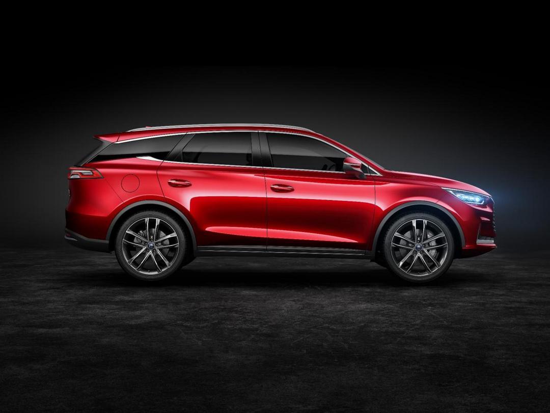 唐EV600的外觀是基于唐DM升級而來,原本橫幅式的前進氣格柵被多個鍍鉻方塊代替,保險杠兩側(cè)的進氣口貨真價實。側(cè)面造型則與唐DM如出一轍,得益于大尺寸輪轂的加持和腰線的堅挺,唐EV600的側(cè)面看起來非常厚重感十足。融入車身造型的懸浮式車頂一路延伸到尾部,貫穿式的細長條車燈配合字母尾標看起來相當精致。