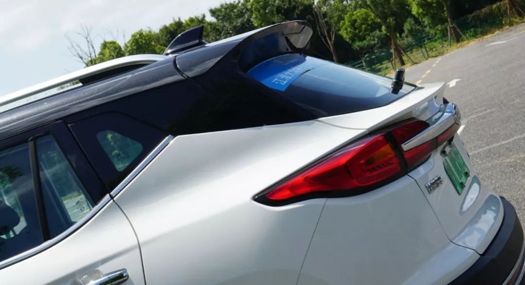 iEVS4的尾燈采用了時(shí)下流行的貫穿式設(shè)計(jì),并加入了LED發(fā)光元件,點(diǎn)亮?xí)r頗具現(xiàn)代感和科技感。值得一提的是,就在尾燈和后車窗之間,iEVS4加入了一個(gè)小鴨翼式的隆起,配合黑色的D柱和車頂,顯著增強(qiáng)了車尾的層次感和速度感。