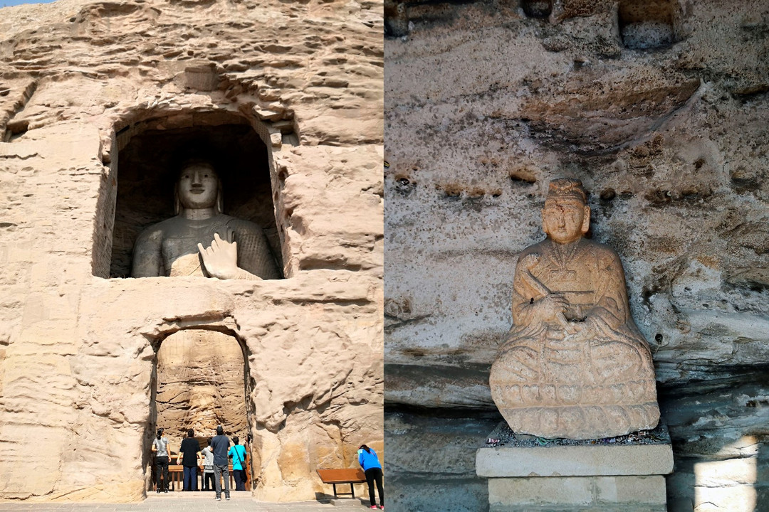 第二天(應(yīng)該是同一天30日白天)十點(diǎn)出發(fā)前往此行的目的地云岡石窟游覽,作為世界四大文明古國之一的中國,歷史文化源遠(yuǎn)流長,我們參觀游覽的云岡石窟距今已有近1560年的歷史,現(xiàn)存主要洞窟51個,造像5100余尊,最高的17米,最小的僅有幾厘米。其中曇曜五窟,是中國佛教藝術(shù)第一個巔峰時期的經(jīng)典杰作。五華洞雕飾綺麗,豐富多彩,是研究北魏歷史、藝術(shù)、音樂、舞蹈、書法和建筑的珍貴資料。