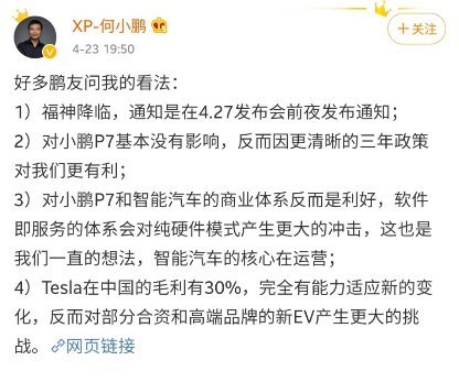小鵬汽車CEO何小鵬表示,新政對小鵬P7基本沒有影響,反而更清晰的三年政策對小鵬更有利,特別是對小鵬智能汽車的商業(yè)體系也更為利好??梢钥闯雒鎸Χ喾矫娴膲毫?何小鵬還是充滿信心。