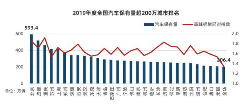 截至2019年底,全國汽車保有量超200萬輛的城市有30個。