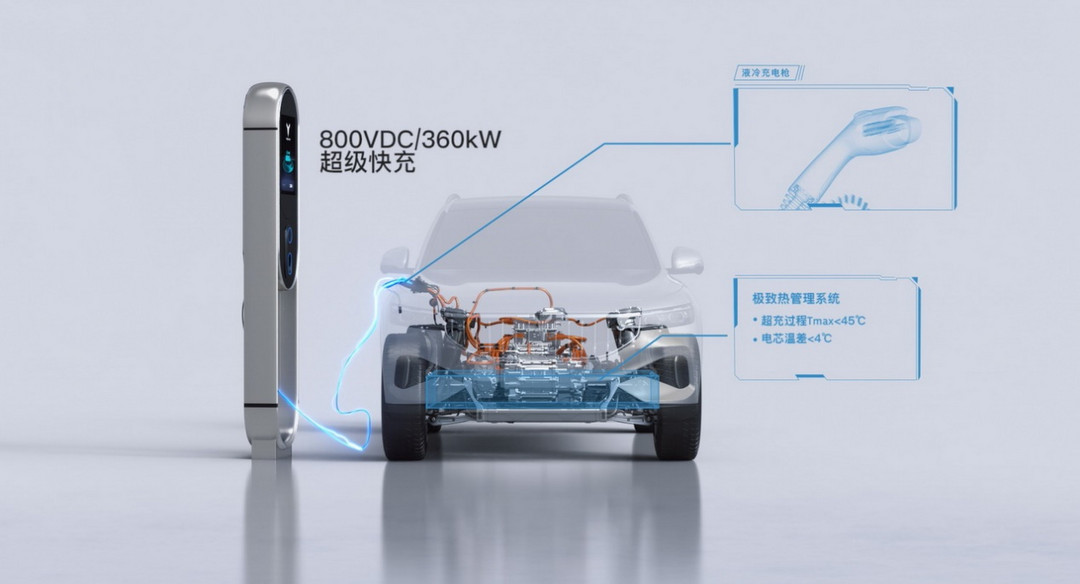 與此同時,該系統(tǒng)憑借SiC電驅(qū)三合一應用技術(shù),使得電驅(qū)效率提高5%,工況效率高達91%,實現(xiàn)相同電量下續(xù)航能力提升5%。對于長途駕駛的用戶來說,5%的電量可以多行駛幾十公里。相比不穩(wěn)定的串并聯(lián)方案,800V高壓系統(tǒng)整體更加可靠,其超級充電系統(tǒng)具備多重冗余保護,保障用戶在采用600A的超大電流進行超級快充時,不會帶來電池的過熱、不穩(wěn)定等安全隱患。此外,該技術(shù)還支持800V 11kW無線快充,充電效率高達92.3%,并支持活體、異物檢測等。