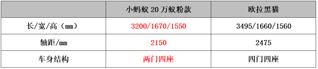 歐拉黑貓車身結(jié)構(gòu)采用傳統(tǒng)的布局方式,設(shè)計(jì)上毫無新意,同時(shí)3495/1660/1560mm(軸距2475mm)的車身尺寸也與其“純電小車”的定位略顯出入,完全沒有展現(xiàn)出“小巧”的優(yōu)勢(shì)。對(duì)比來看,奇瑞小螞蟻兩門四座設(shè)計(jì)好開好停,“小巧”優(yōu)勢(shì)更明顯,國(guó)慶出游輕松帶你肆意暢行~