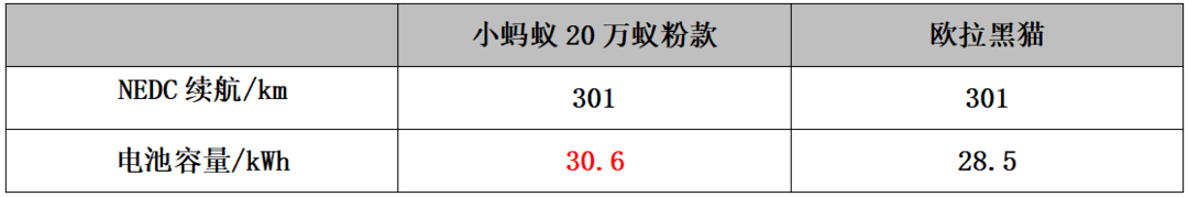準(zhǔn)備入手新能源汽車的用戶,續(xù)航必然是不容忽視的一項(xiàng),但續(xù)航真的只是看NDEC就可以了嗎?從官方公布的數(shù)據(jù)來看,奇瑞小螞蟻和歐拉黑貓的NEDC續(xù)航均為301km,但從電池容量來看的話,似乎另有“玄機(jī)”。