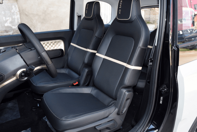 來到車內(nèi),KiWi EV還在中控、車門板以及儲物格等處加入了稻谷植物纖維材質(zhì),不僅更環(huán)保,而且能有效降低車內(nèi)異味,輕量化方面也有更好的表現(xiàn),讓人驚喜;同時前排空間的乘坐舒適性較為不錯,后排空間就略顯擁擠了。