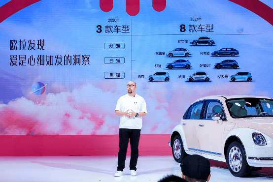 2021年這一年,歐拉的產(chǎn)品陣營從黑貓、白貓、好貓三款產(chǎn)品擴充到芭蕾貓、朋克貓、閃電貓、好貓GT等,全面覆蓋A00到B級市場。值得一提的是,本次廣州車展亮相的朋克貓、閃電貓也是外觀、內(nèi)飾等都在量產(chǎn)狀態(tài)下的呈現(xiàn)。