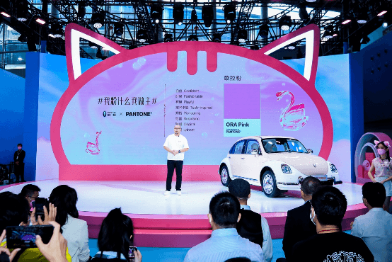 就在廣州車展,歐拉聯(lián)手國際權(quán)威色彩機構(gòu)PANTONE,標(biāo)定屬于女性汽車用戶的粉色標(biāo)準(zhǔn)——ORA Pink(歐拉粉)。