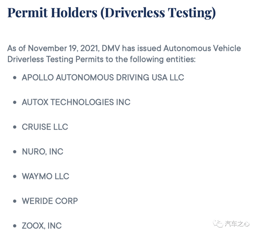 但大家現(xiàn)在再去加州機(jī)動(dòng)車輛管理局(DMV)官網(wǎng)查看,小馬智行已經(jīng)不在「Driverless Testing」許可名單中了,8 家公司變成了 7 家。