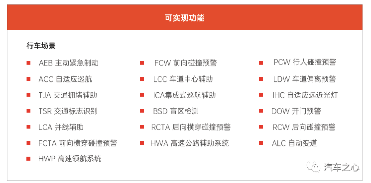在應用場景上,iPilot 方案能覆蓋高速公路、城市快速路等結構化道路和城區(qū)道路,支持 AEB、ACC、TJA、ICA、智能領航輔助、城市智能領航等多種智能駕駛系統(tǒng)功能。