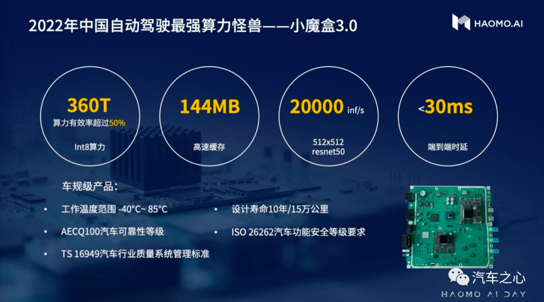 根據(jù)毫末智行的規(guī)劃,這套系統(tǒng)將在 2022 年 5 月正式搭載上市,基于高通的自動駕駛計算平臺 Snapdragon Ride 打造的域控制器——小魔盒 3.0,配有兩顆激光雷達、12 顆攝像頭。