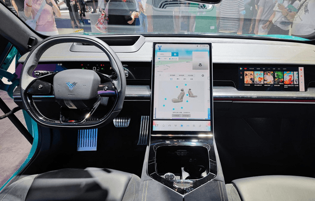 哪吒S的內(nèi)飾也比較簡潔,與特斯拉Model 3和小鵬P7是一個流派。不過它在17.6英寸豎置中控屏之外,還搭載了12.3英寸副駕娛樂屏,科技感和娛樂性都更強。