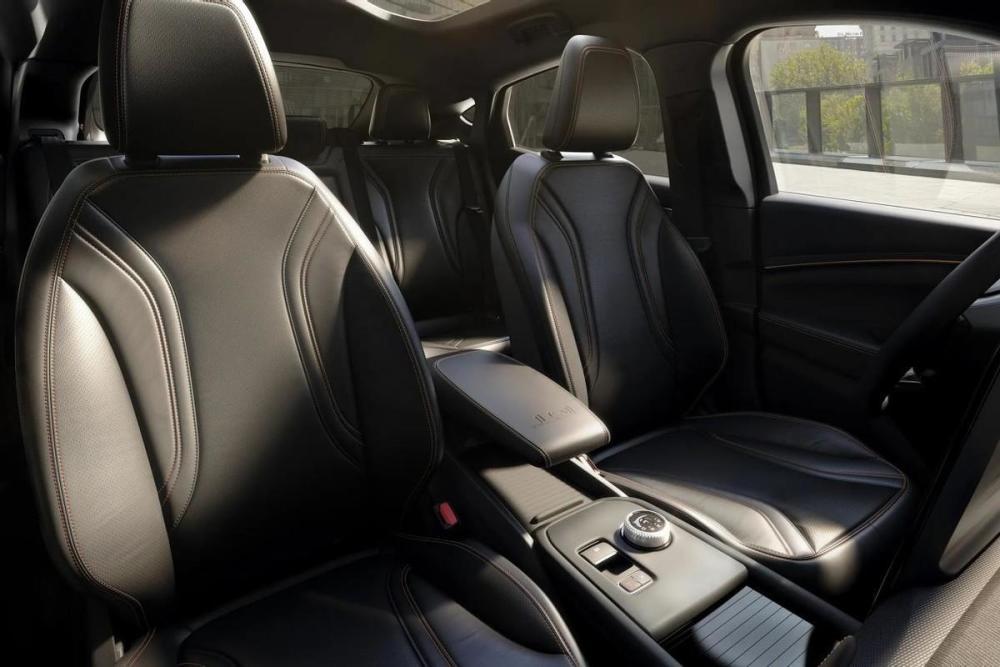 車內(nèi)設(shè)計主要可以分為幾個特點,一橫一豎兩塊液晶屏幕,橫向的液晶儀表盤是10.2英寸,縱向的中控豎屏為15.5英寸。中控區(qū)域加入了翻毛皮材質(zhì)飾板,操作臺則是采用皮質(zhì)覆蓋,此外車內(nèi)其它地方也有不少皮質(zhì)材料,并且采用了較粗的縫線,縫線針腳做工比較不錯。