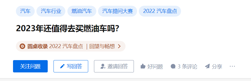 在這樣的大背景下,有網(wǎng)友在某問答平臺上提出了一個問題:“2023年還值得去買燃油車嗎?”
