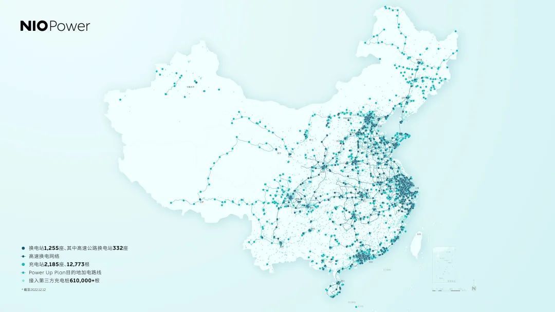 目前,蔚來在中國布局了超1200座換電站,其中在高速上332座,距離2025年在全球建成4000座換電站完成了四分之一的目標。