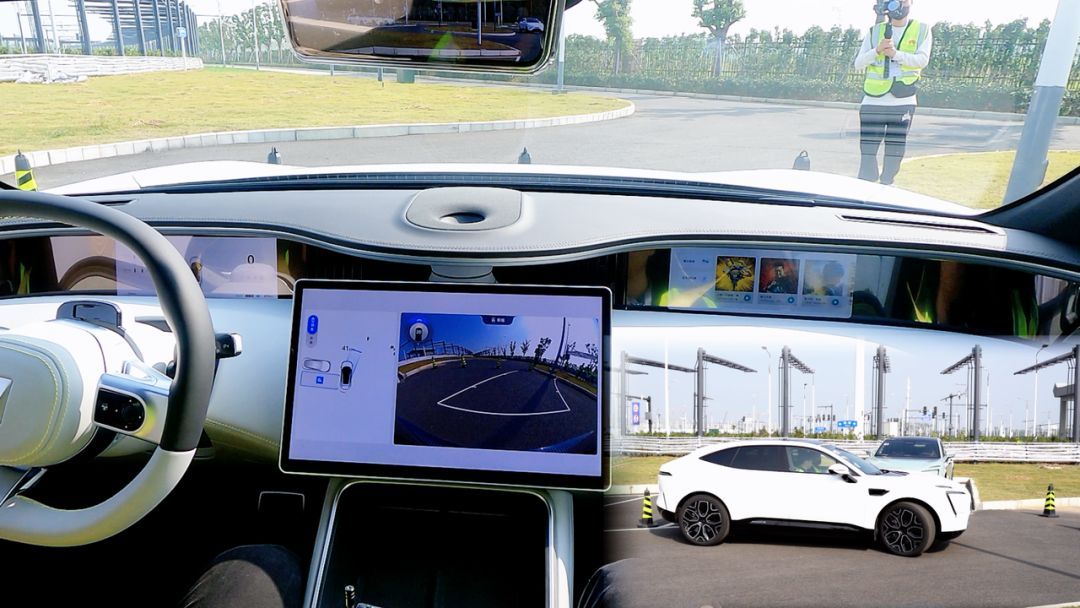 阿維塔這個(gè)時(shí)候可以車頭泊入或者車尾泊入,我們選擇了難度更高的車尾泊入,這樣還會(huì)增加一個(gè)調(diào)頭的操作。
