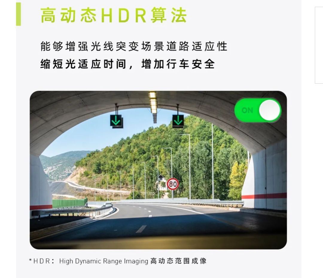 阿維塔11采用了高動(dòng)態(tài)HDR算法。這個(gè)詞在相機(jī)、影像領(lǐng)域聽的很多。大概什么意思呢。就是當(dāng)環(huán)境的光線發(fā)生快速變化時(shí),相機(jī)會(huì)拍攝多幀,一些幀更亮、一些幀更暗,然后將這些幀的信息拼到一起,得到細(xì)節(jié)更豐富的畫面。