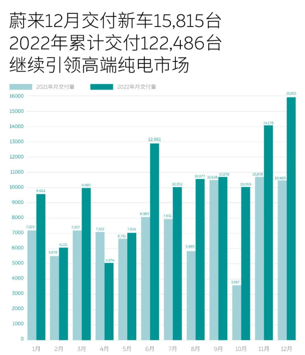 2022年,蔚來共交付新車122,486輛,同比增長34%;截至2022年12月31日,蔚來新車已累計(jì)交付新車289,556輛。