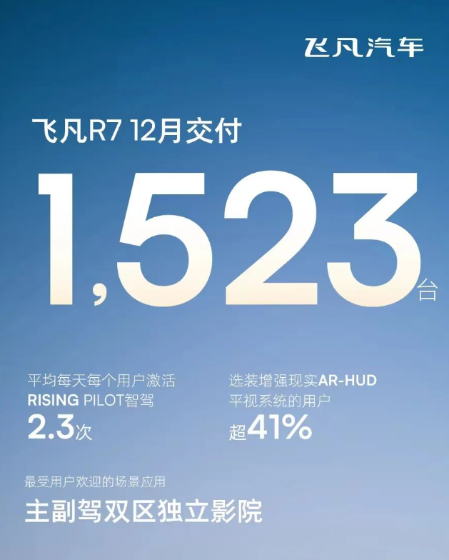 同時(shí),飛凡汽車表示,平均每天每個(gè)用戶激活RISING PILOT智駕2.3次,選裝增強(qiáng)顯示AR-HUD平視系統(tǒng)的用戶超41%。