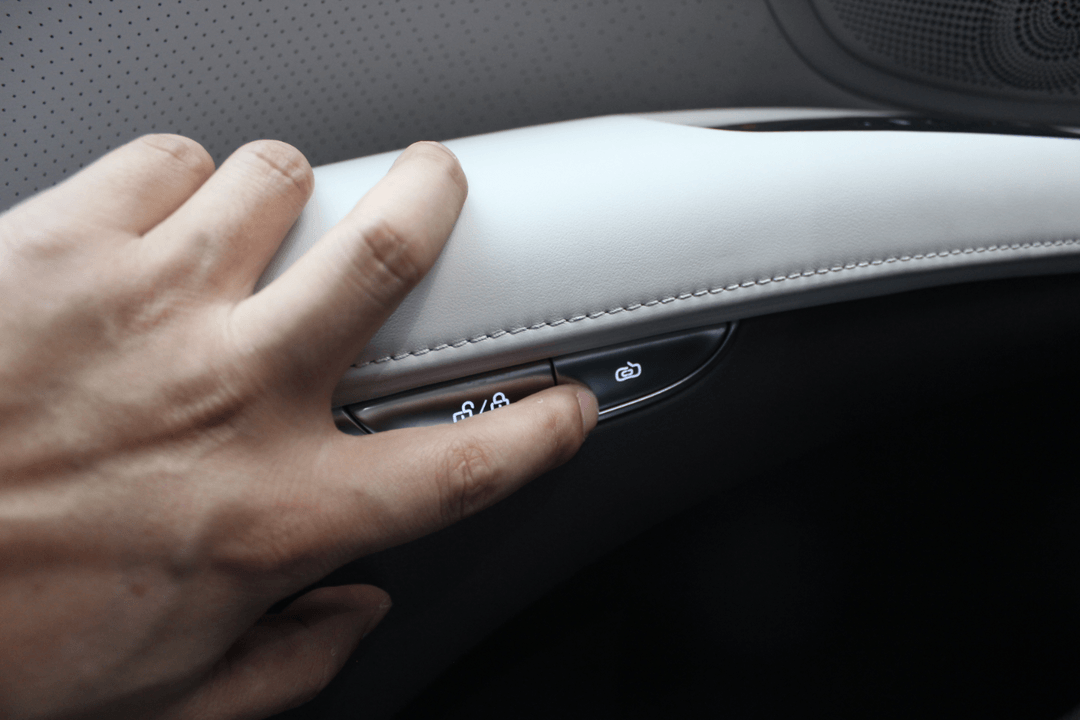 另外值得一提的是,智己LS7的四個車門均為電吸門,其中,主駕門更采用了電動門的設計,輕觸車門把手車門即可自動彈開,上車后踩下剎車踏板,車門則自動關閉。