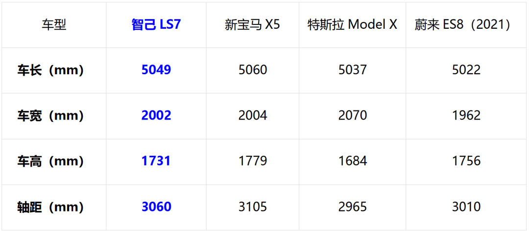 智己LS7車身長度為5049mm,軸距則達到了3060mm,這個尺寸在中大型SUV中似乎并不算特別領先,與寶馬X5基本處于同一水平。