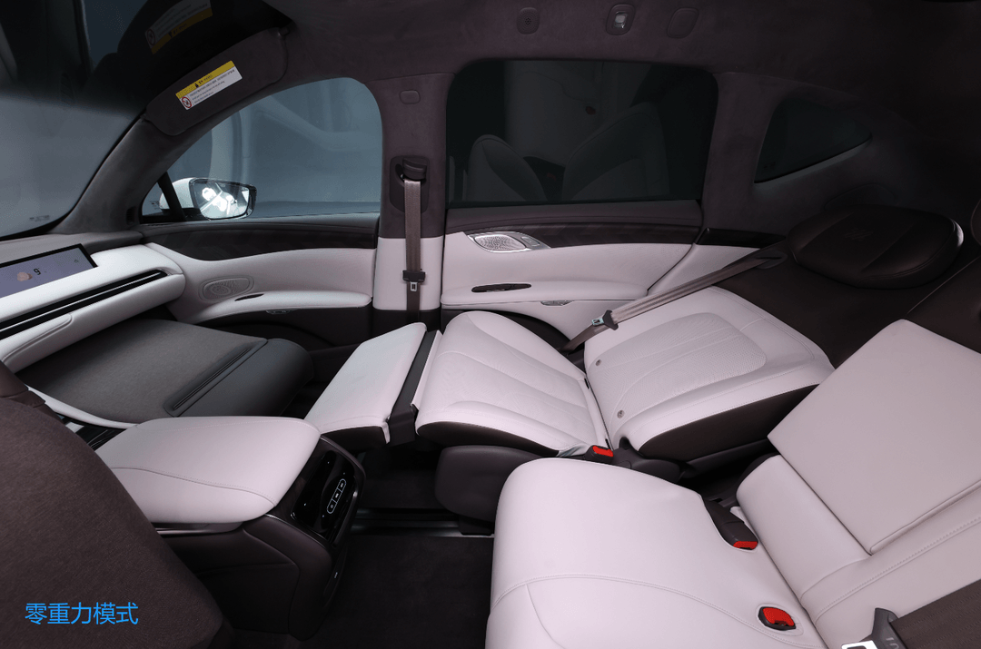 當處于零重力浮感模式下時,副駕全平折疊之后借助超長滑軌折疊推入最前端,為后排騰出寬敞的空間;此時,后排座椅自動進入宛如宇航員在漫長星際旅行時的標準121°零重力坐姿,使乘員全身可獲得最均勻受力。
