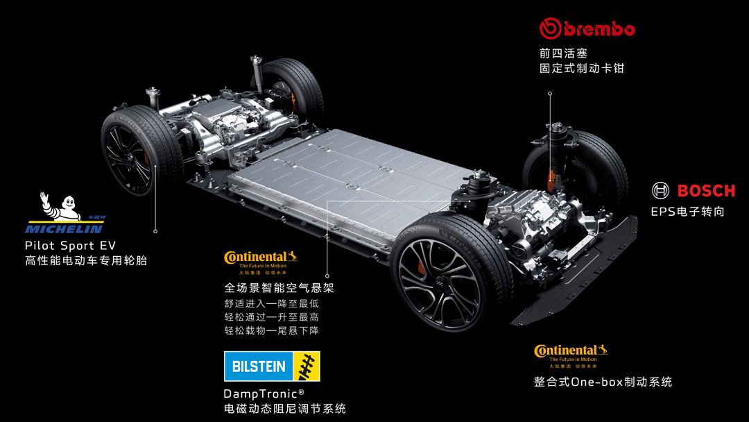 具體來看,這款車全系標配與瑪莎拉蒂Levante同系列的德國大陸空氣彈簧,以及意大利布雷博活塞固定式制動卡鉗,同時還采用了與保時捷911同級別的Damptronic電控技術,EPS電子轉向系統(tǒng)來自德國博世,整合式制動系統(tǒng)則來自于德國大陸。