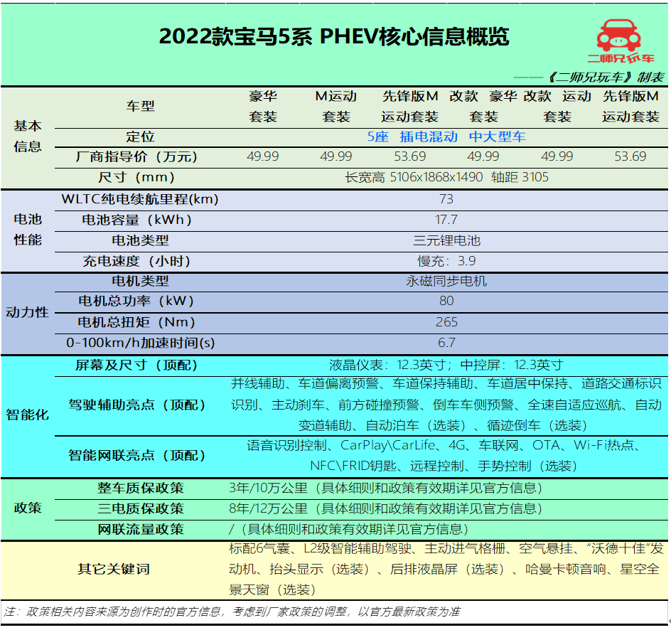 與上述2款車型一樣,寶馬5系 PHEV在外觀設計上也延續(xù)了燃油版車型的設計方式,雙腎型進氣格柵、天使之眼大燈組等設計,均未缺席。