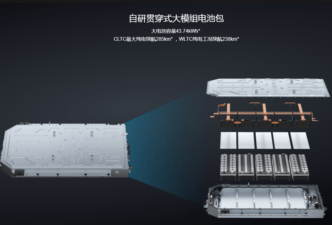具體來看,這款車搭載了一款最大功率為96kW的1.2T三缸發(fā)動(dòng)機(jī)作為增程器,同時(shí)還搭載后置單電機(jī)和三元鋰電池,系統(tǒng)最大功率為200kW,純電續(xù)航里程最大可達(dá)285km,滿油滿電狀態(tài)下續(xù)航里程可達(dá)1024km。