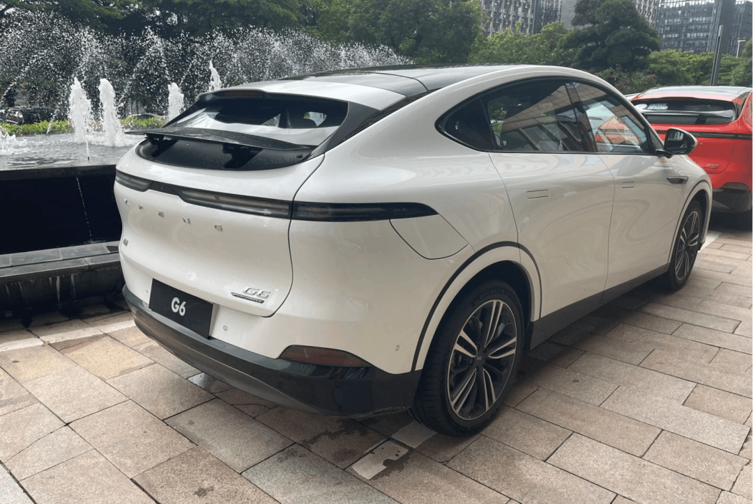 視線轉(zhuǎn)到車尾處,小鵬G6的尾燈組風格和前臉燈帶類似,保持了高度的一致性。