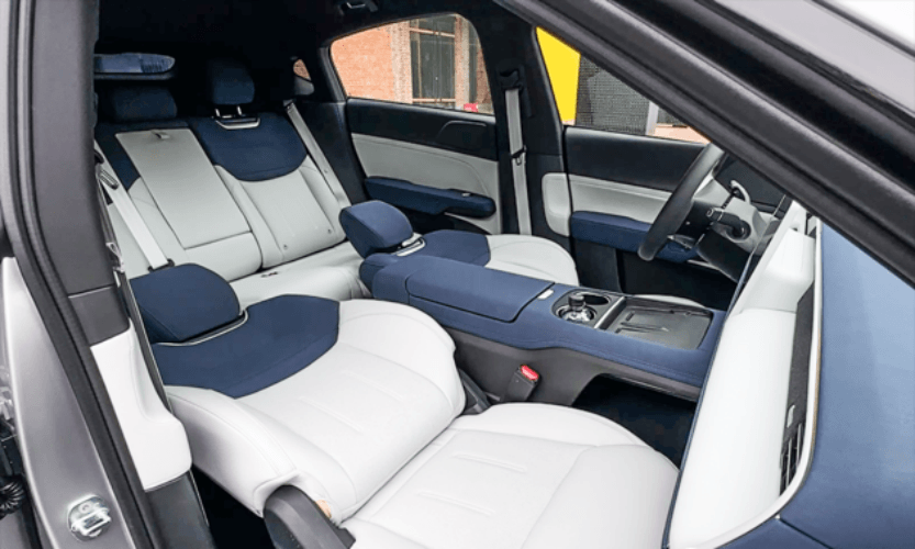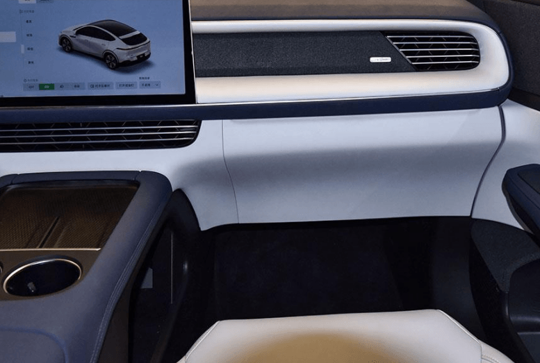 內(nèi)飾部分,小鵬G6采用了Circle of life矢量星環(huán)設(shè)計語言,整體設(shè)計風格偏簡約,灰白和藏藍色的組合搭配起來比較協(xié)調(diào),并且在用料上選擇了超細纖維絨面和有機硅皮革等抗菌耐污、柔軟親膚的面料。