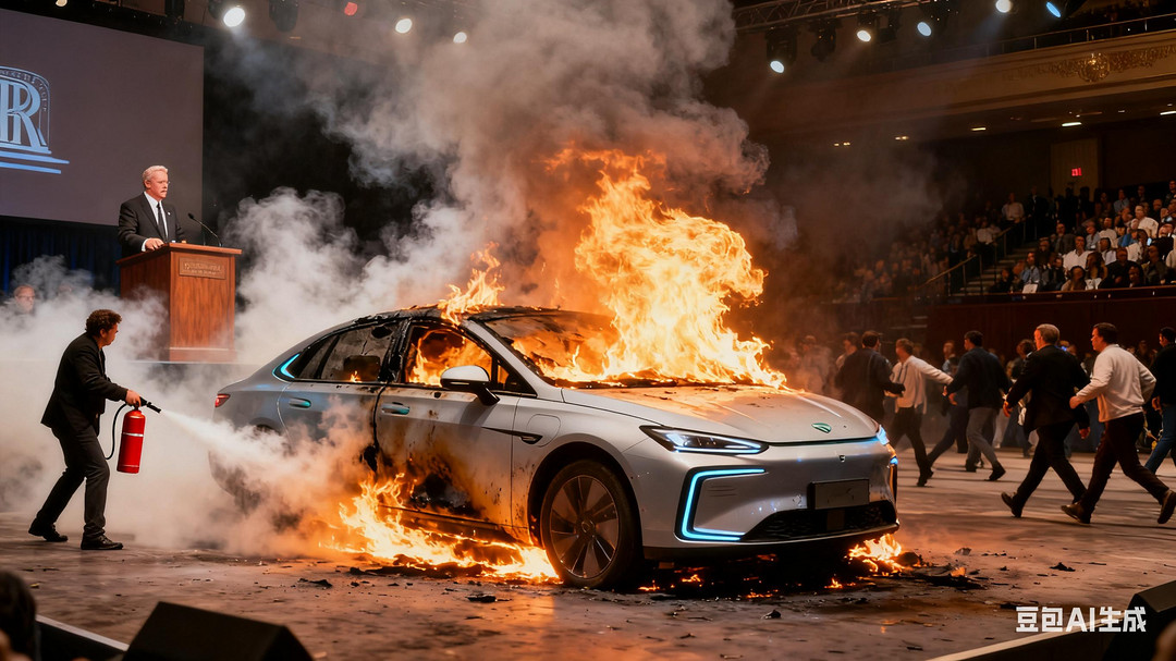 燃油車是一個慢吞吞的火苗,而電車著了,就像這理想Mega,很突然,就幾秒鐘,火勢也異??裨?,畫面更有沖擊感,也更讓人心驚膽跳,想不讓人關(guān)注都難。