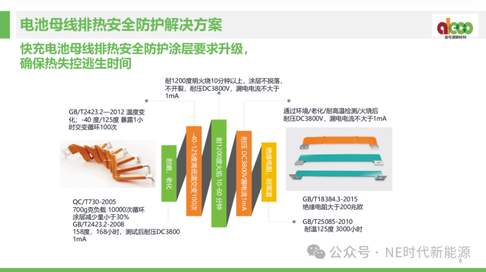 而隨著快充電池的普及,母線排熱安全防護(hù)涂層的要求也進(jìn)一步升級(jí),進(jìn)而確保熱失控逃生時(shí)間。