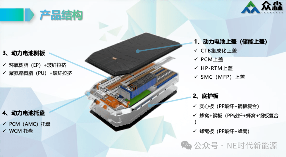 作為高性能復(fù)合材料規(guī)?;鉀Q方案提供商,廣東眾森主要提供給動(dòng)力電池上蓋、底護(hù)板、動(dòng)力電池側(cè)板、動(dòng)力電池托盤等產(chǎn)品結(jié)構(gòu)。