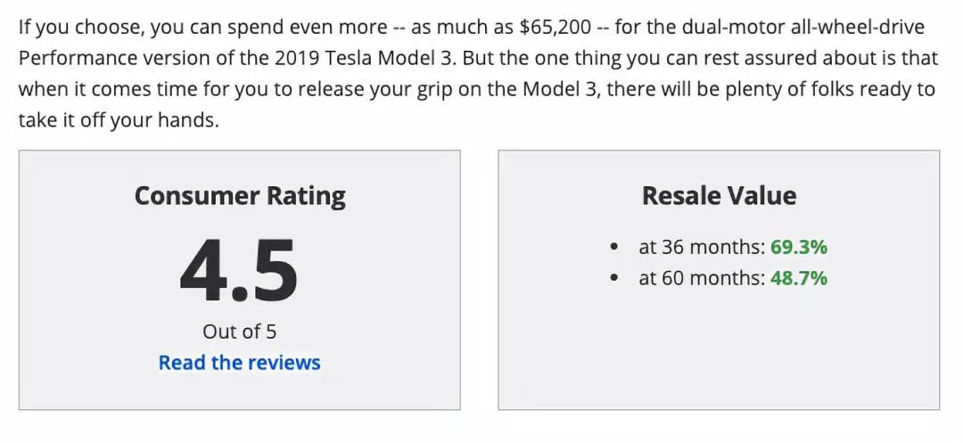 這樣來看,2019 特斯拉 Model 3 的 64.3% 的三年保值率真得很高。