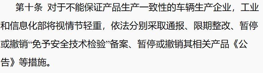 2010年6月,工信部發(fā)布《車輛生產(chǎn)企業(yè)及產(chǎn)品生產(chǎn)一致性監(jiān)督管理辦法》,對車輛一致性提出要求