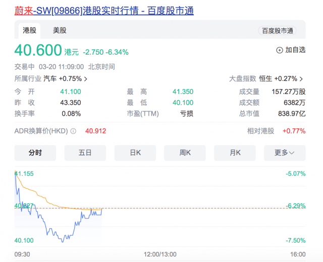 【TechWeb】3月20日消息,今日開盤,蔚來港股下跌5.19%,報(bào)41.1港元,盤中跌幅進(jìn)一步拉大,一度跌逾7%,報(bào)40.1港元,創(chuàng)上市以來新低。