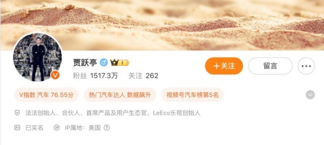 截至發(fā)稿,賈躍亭的微博粉絲1517.3萬,抖音粉絲144.4萬。