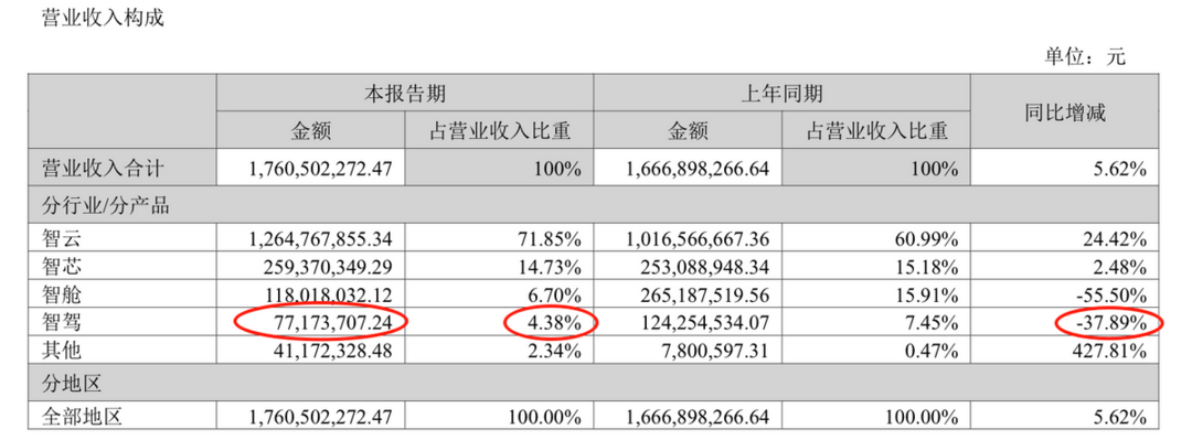 AI業(yè)務(wù)的盈利轉(zhuǎn)化周期遠(yuǎn)超預(yù)期。2025年上半年,四維圖新71.84%的營(yíng)收仍依賴智云業(yè)務(wù),AI相關(guān)板塊尚未實(shí)現(xiàn)營(yíng)收反超。即便手握585萬(wàn)套智駕訂單,但智駕方案從定點(diǎn)到量產(chǎn)的周期通常長(zhǎng)達(dá)1-2年,且適配過程中還需持續(xù)投入資金。2024年其智駕業(yè)務(wù)營(yíng)收僅2.71億元,同比下滑28.08%;2025年上半年,其智駕業(yè)務(wù)收入7717.37萬(wàn)元,占比4.38%,同比降低37.89%,印證了“訂單繁榮”與“營(yíng)收落地”的脫節(jié)。