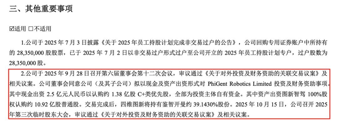 在自身“造血”能力不足的情況下,公司還需撬動(dòng)資金加碼AI——9月底剛向鑒智開曼(PhiGentRoboticsLimited)提供2.5億元借款用于認(rèn)購(gòu)境外AI企業(yè)股份,進(jìn)一步加劇了資金壓力。