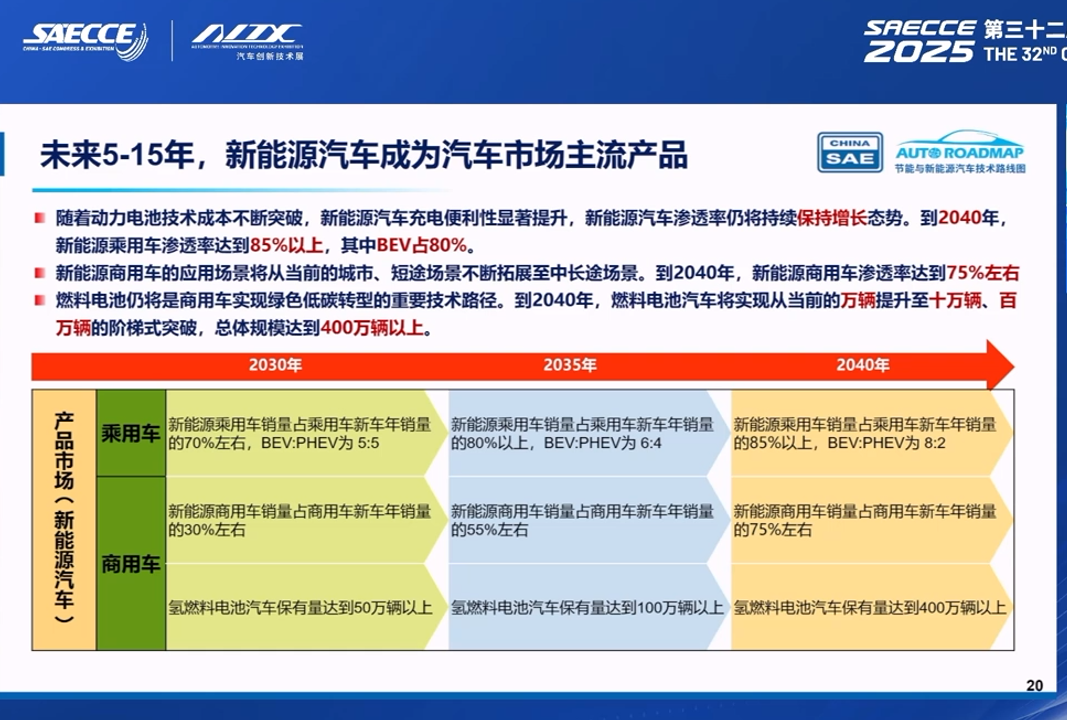 至2035年,傳統(tǒng)能源乘用車(chē)實(shí)現(xiàn)全面混動(dòng)化;到2040年,含內(nèi)燃機(jī)乘用車(chē)(HEV、PHEV、REEV)銷(xiāo)量在乘用車(chē)新車(chē)銷(xiāo)量中的比例仍將有三分之一左右。