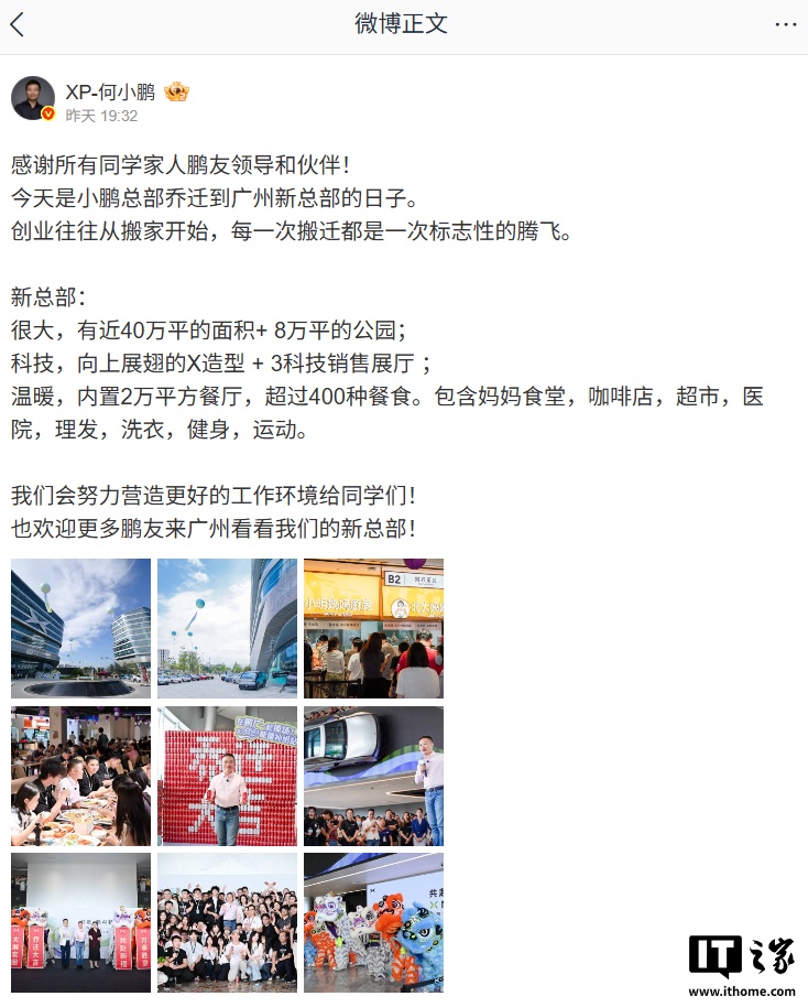 此外,小鵬汽車于10月21日宣布其新總部在廣州正式啟用。新總部大樓占地面積近40萬平方米,并配有8萬平方米的公園。新總部的設計采用了向上展翅的X造型,并設有3個科技銷售展廳。內(nèi)部設施包括2萬平方米的餐廳,提供超過400種餐食選擇,以及媽媽食堂、咖啡店、超市、醫(yī)院、理發(fā)店、洗衣店、健身房和運動設施等,為員工提供了全面的生活和工作支持。