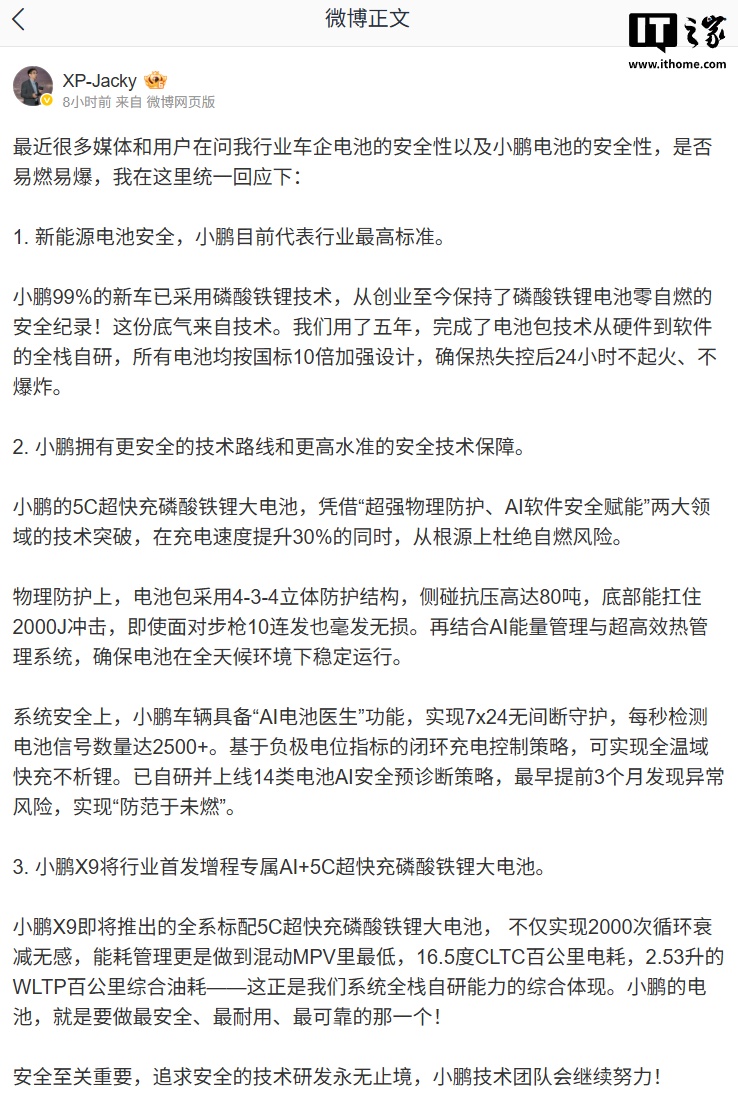 10月27日,小鵬汽車(chē)動(dòng)力總成高級(jí)總監(jiān)Jacky發(fā)文回應(yīng)