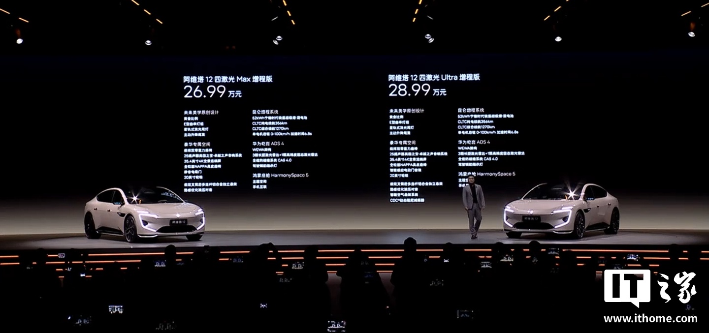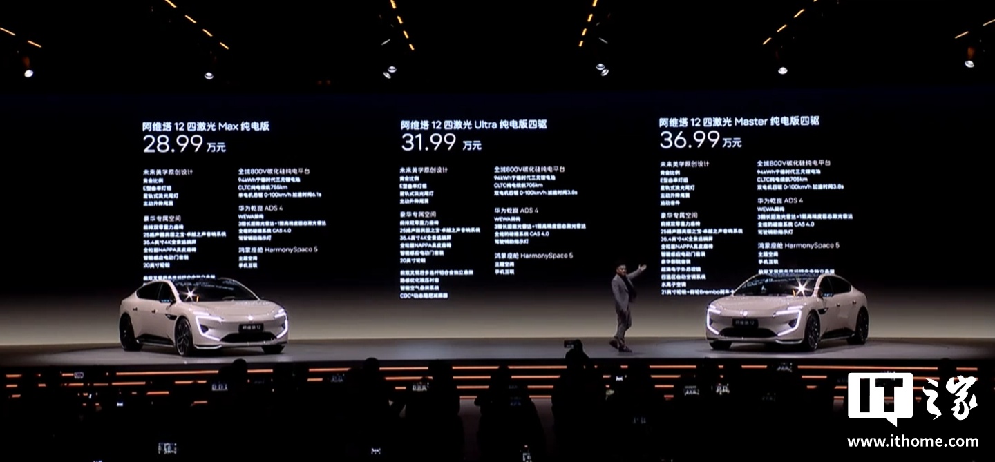 新車預(yù)裝華為乾崑智駕ADS 4,采用全新WEWA技術(shù)架構(gòu),端到端時延縮短50%、重剎率降低70%、通行效率提升20%。阿維塔12四激光版還擁有鴻蒙座艙HarmonySpace 5,提供皓白、曜灰、曜黑、云紫、曦金灰、曦紫(啞光色)外觀配色可選。新車標(biāo)配全景遠(yuǎn)端屏、前排雙零重力座椅、智能升降快充浮島、智能電動升降尾翼、25揚(yáng)英國之寶·卓越之聲音響系統(tǒng),全系可選豪華影院套裝、超清電子外后視鏡。