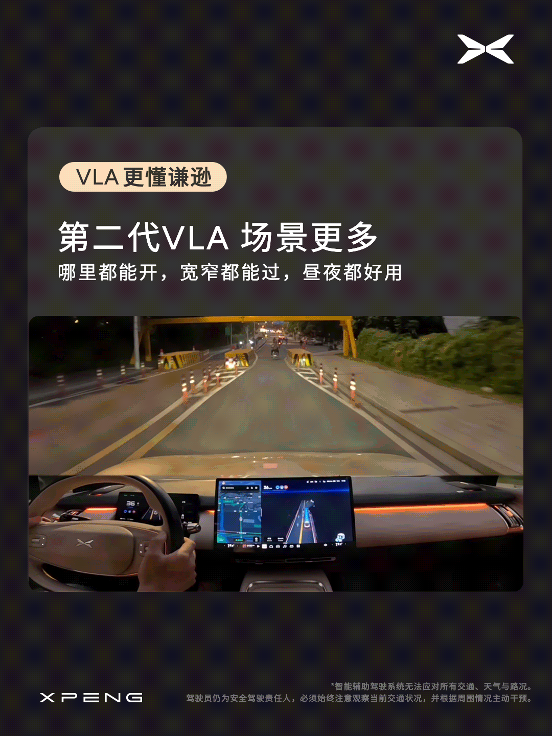 今日,小鵬汽車通過(guò)官方微博宣布,其第二代VLA(視覺(jué)-語(yǔ)言-動(dòng)作)大模型將在小鵬科技日上正式發(fā)布。官方介紹稱,第二代VLA模型具有更高的效率和更快的反應(yīng)速度,能夠?qū)崿F(xiàn)在復(fù)雜路況下的絲滑貫通,被譽(yù)為“小路之王”。該模型能夠輕松應(yīng)對(duì)復(fù)雜路口,并在城市道路行駛中實(shí)現(xiàn)少頓挫、無(wú)誤剎、零推背的駕駛體驗(yàn)。此外,預(yù)告圖中還提到第二代VLA模型將具備“哪里都能開(kāi)、寬窄都能過(guò)、晝夜都好用”的能力。