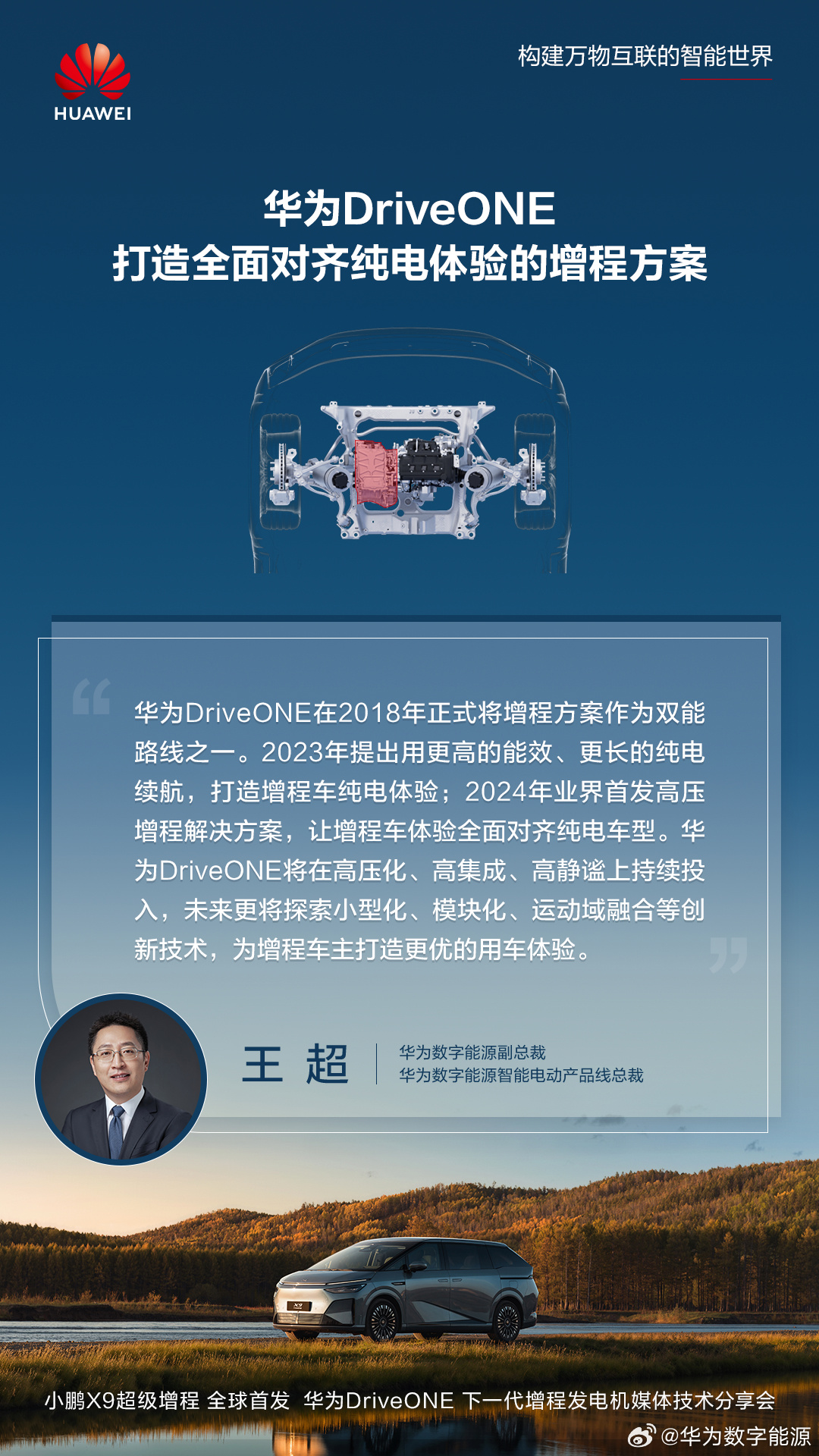 12月7日,小鵬汽車宣布X9超級增程MPV全球首發(fā)搭載華為DriveONE下一代增程發(fā)電機。華為數(shù)字能源技術有限公司透露,華為DriveONE動力總成累計交付量將在2024年超過100萬套,增程方案搭載交付車輛累計超50萬輛,預計2025年動力總成發(fā)貨量將達到100萬套。華為DriveONE自2018年將增程方案作為雙能路線之一,2024年推出高壓增程解決方案,提升增程車體驗至純電車型水平。