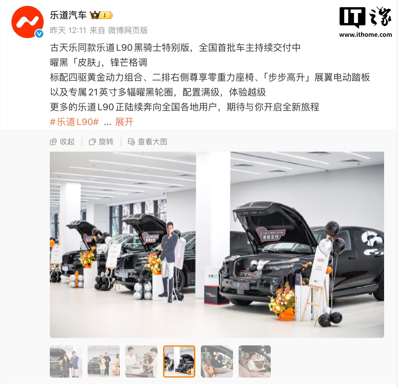 12月8日,蔚來樂道汽車宣布“古天樂同款”樂道L90黑騎士特別版已開啟全國(guó)首批車主交付。該特別版車型整車購(gòu)買價(jià)為30.68萬(wàn)元,