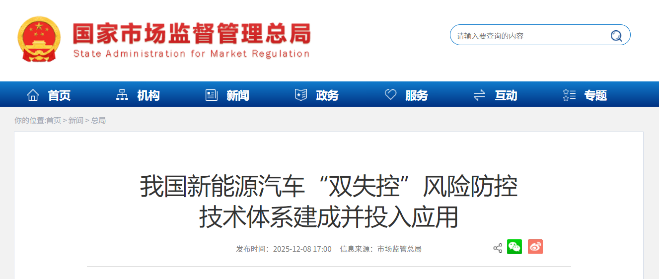 今日,國家市場(chǎng)監(jiān)管總局官網(wǎng)發(fā)布消息,針對(duì)新能源汽車熱失控和速度失控的“雙失控”問題,總局已構(gòu)建起一套風(fēng)險(xiǎn)防控技術(shù)體系并投入應(yīng)用。該體系通過“雙失控”事故深度調(diào)查與缺陷判定技術(shù)研發(fā),結(jié)合“線上預(yù)警+線下檢測(cè)”的風(fēng)險(xiǎn)防控機(jī)制,以及“新能源汽車智慧監(jiān)管云平臺(tái)”的統(tǒng)籌賦能,旨在提升召回監(jiān)管科學(xué)化水平,保障消費(fèi)者安全。